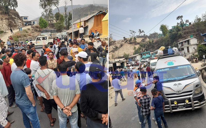 ठक्कर दिने सुदूरपश्चिम प्रदेश ०२००१ ख १२८७ नम्बरको बसका चालक फरार भएका थिए । तर, उक्त पवनदुत यातायात व्यवसायी समिति सम्पर्कमा नआएकाले आक्रोशित स्थानीयले राजमार्ग अवरुद्ध पारेका हुन् । स्थानीयले दोषीलाई काराबाहीको माग गर्दै चक्काजाम गरेको मृतकका आफन्त अमरबहादुर पुनले बताए ।